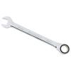 Гаечный комбинированный ключ представляет собой конструкцию, объединяющую рожковый профиль и накидной профиль с рабочей частью со встроенным храповым механизмом. Сочетание двух одноразмерных профилей компенсируют недостатки каждого в отдельности. Храповой механизм с колесом в 72 зуба обеспечивает высокий передаваемый крутящий момент благодаря применяемой хромованадиевой стали, закаленной особым способом. Малый, 5°, обратный ход делает ключ незаменимым в ограниченном рабочем пространстве. Ключ изготовлен по стандарту ANSI, имеет трехслойное хромоникелевое покрытие, зеркально отполирован. Применяется при обслуживании крепежа при свободном вращении.